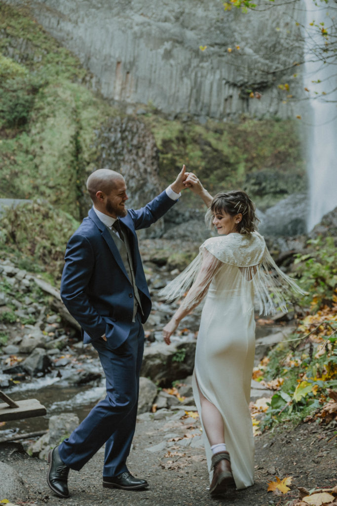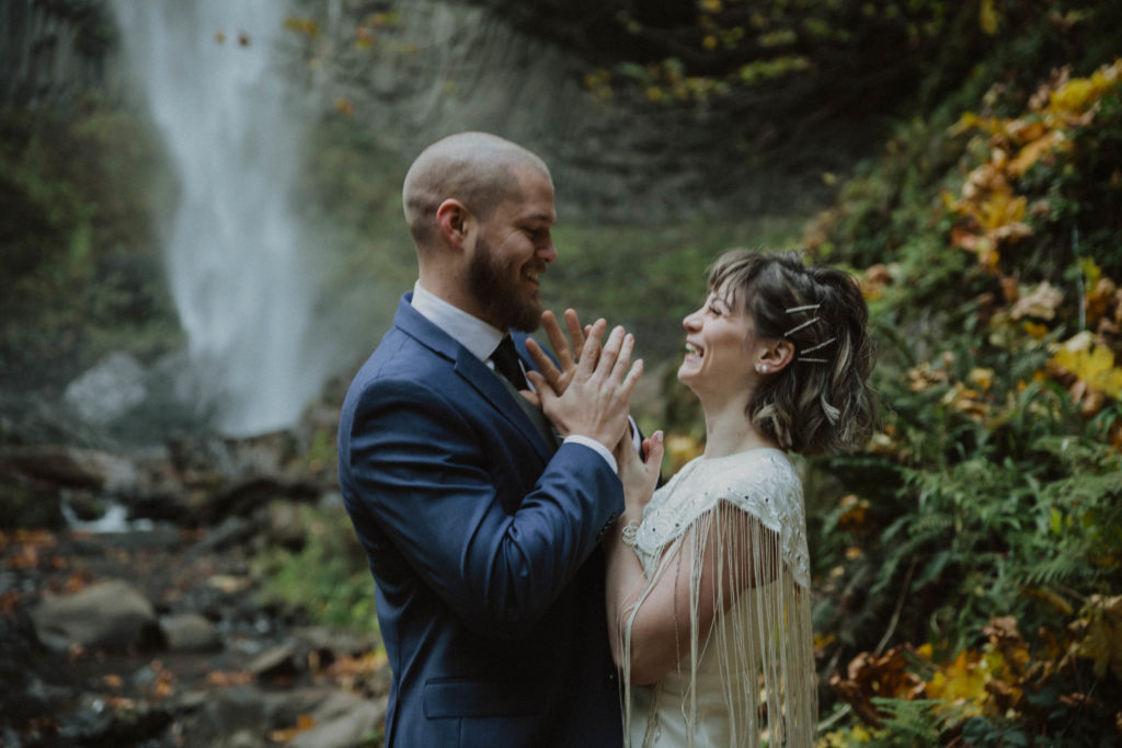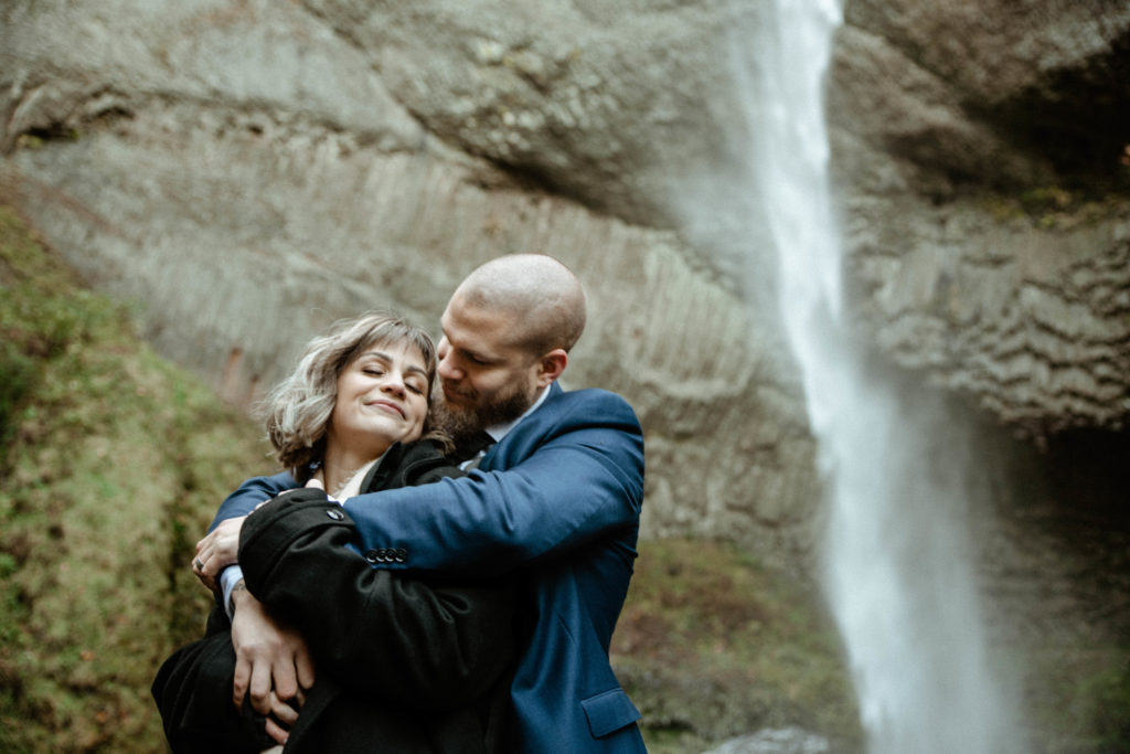 That can really make or break your wedding day or elopement day-attitudes! Things don’t always go as planned, and thats ok! Mother nature has a way of working it all out. After the Elopement, Becca and Ethan changed into some warmer clothes. We spent another hour or so wandering around different areas and found more amazing waterfalls. Oregon is a truly magical place, and if you are your partner are considering a PNW elopement, I highly recommend considering Oregon. It’s amazing that there’s so much to offer and so much lushness!